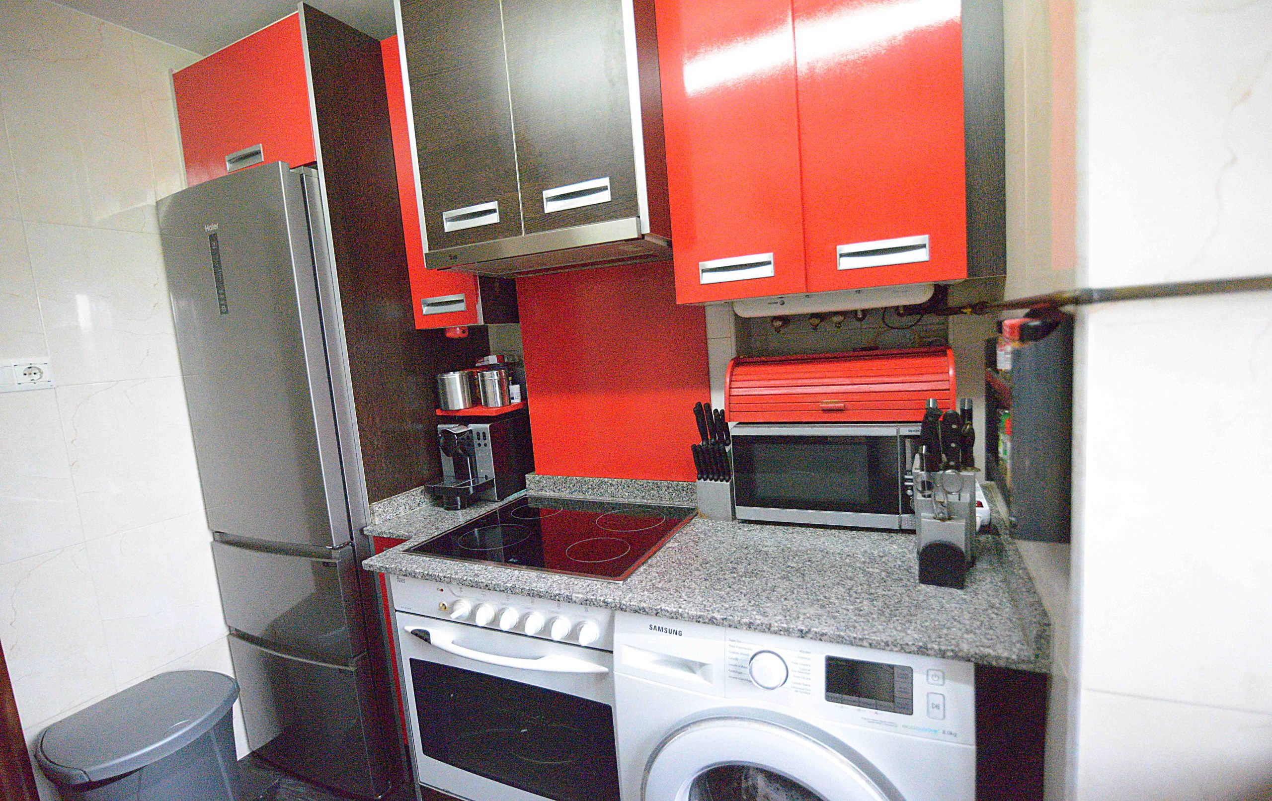 La habitación tiene cama doble (150×190), armario grande, ventana luminosa y TV privada, escritorio. El piso cuenta con salón con TV, internet rápido, cocina equipada y baño con ducha. Está en un 4º sin ascensor.