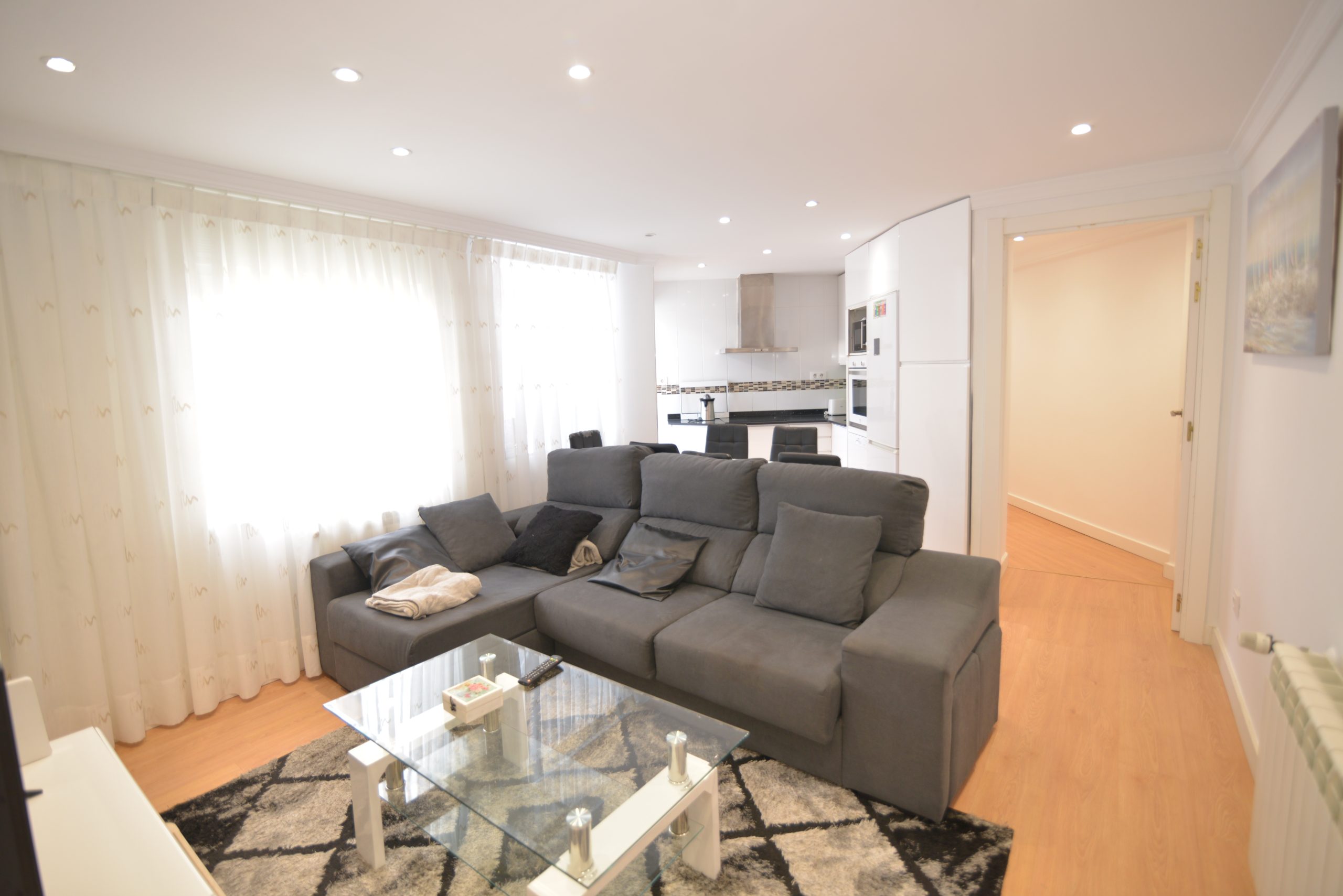 El apartamento tiene wifi, cocina y salón totalmente diáfanos, con todos los electrodomésticos (nevera, combi, lavavajillas, horno, microondas, menaje de cocina, etc.)